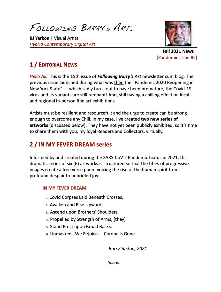 "FOLLOWING BARRY's ART" Newsletters - ARCHIVE
